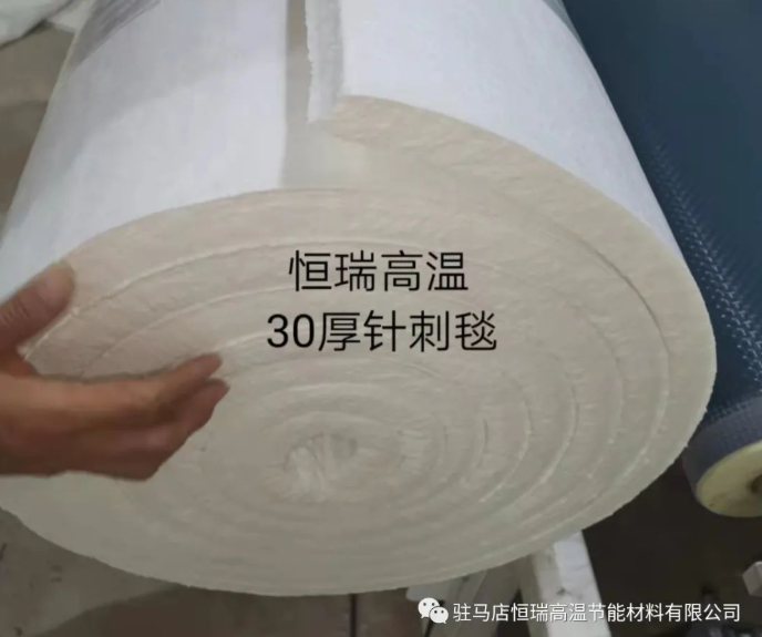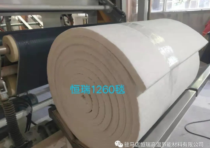 恒瑞1260型陶瓷纤维毯采用优质的一级高岭土料石为原料,料石被高温熔融后经专业成纤设备制成长丝纤维,纤维经过双面针刺机成型为毯(毡)型材。被双面针刺后的纤维交织度得到了很大的提高,其抗分层性能、抗拉强度和平整度也得到了很大的提升。除此之外,恒瑞纤维毯生产线配备的高温热处理段长达20多米,纤维经过充分的高温处理后,收缩率更低,渣球含量更小,热稳定性会更好。